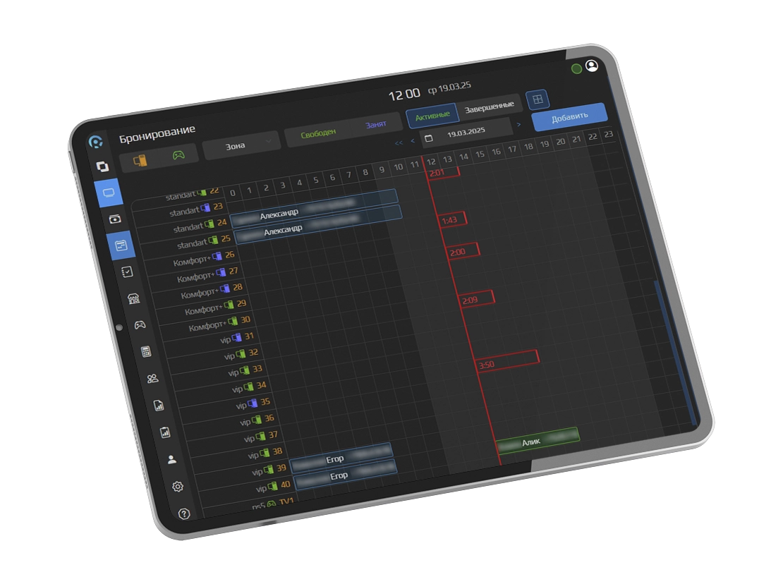 Разработано специально для управления и контроля всех процессов. Система отличается простотой настройки, что позволяет быстро интегрировать её без необходимости длительного обучения персонала. Широкий функционал охватывает все ключевые аспекты: от бронирования мест и учёта времени до управления финансовыми показателями и анализа эффективности.