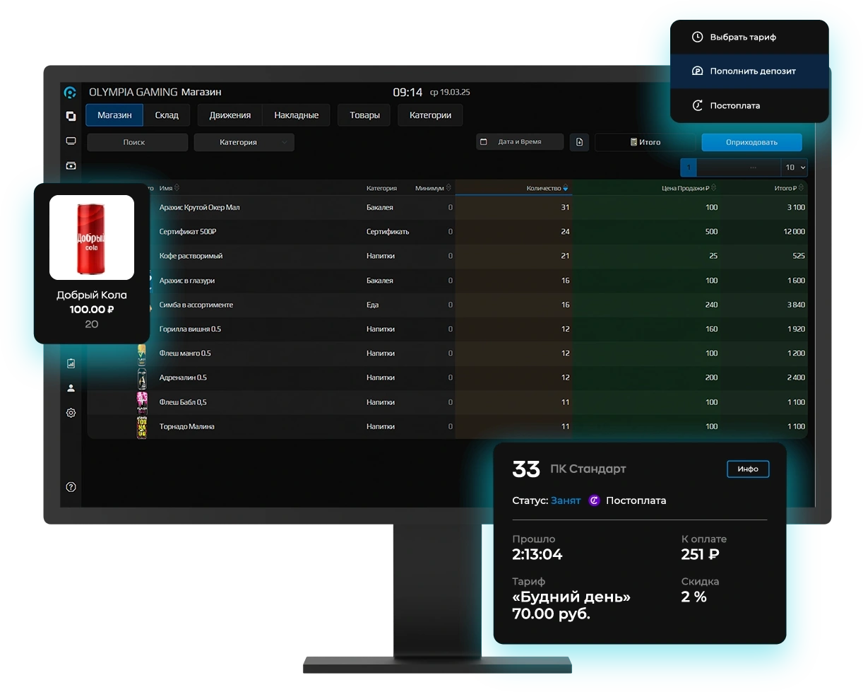 Понятные отчеты, умный маркетинг, быстрый и безопасный шелл, статистика продуктивности администраторов — все для эффективного управления компьютерным клубом!