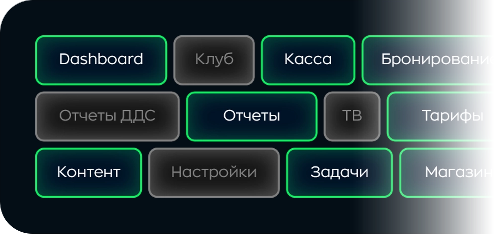 Позволяет удобно управлять как одним клубом, так и сетью заведений. Вы сможете контролировать все процессы из единой панели, настраивать индивидуальные параметры для каждого клуба и анализировать эффективность всей сети.